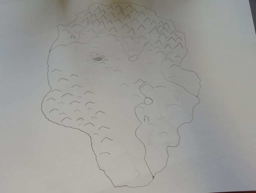 Here, I got a lot less scientific in determining how many locations to create. I opted to roll a couple of times from the regional tables for elevation and flora/fauna variations from what was determined at the continental level. I added a few settlements from the settlements table until it felt like there was enough to warrant exploration and did the same with the military structures. I may add some guidelines on “how many settlements should a region ideally have?” but I mostly just intuited from the continental rolls what felt appropriate for the flora/fauna levels and other features.